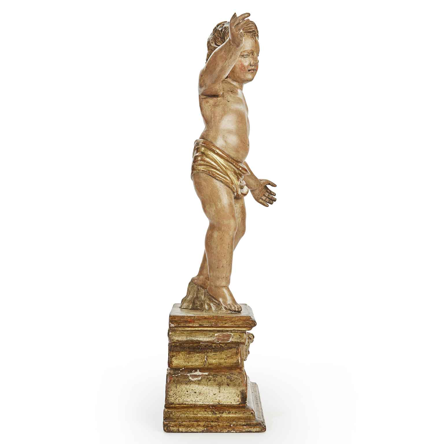 They rest on two beautiful Baroque bases, with two faces of winged angels in the middle. The lacquering of the bodies has been refined; in the right hand of one figure, two small phalanges are missing.