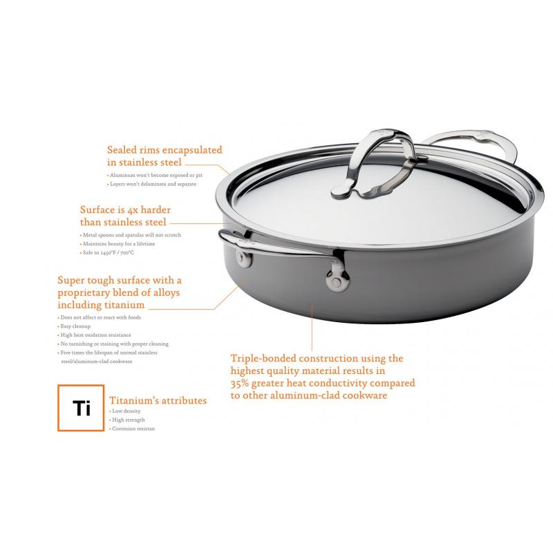 Besides, by choosing a titanium pan, you will not only acquire a kitchen utensil that will serve you trouble-free for a very long time, but you can also be confident that its coating will feature exceptional resistance to abrasion. This is what sets titanium products apart from steel and iron ones.