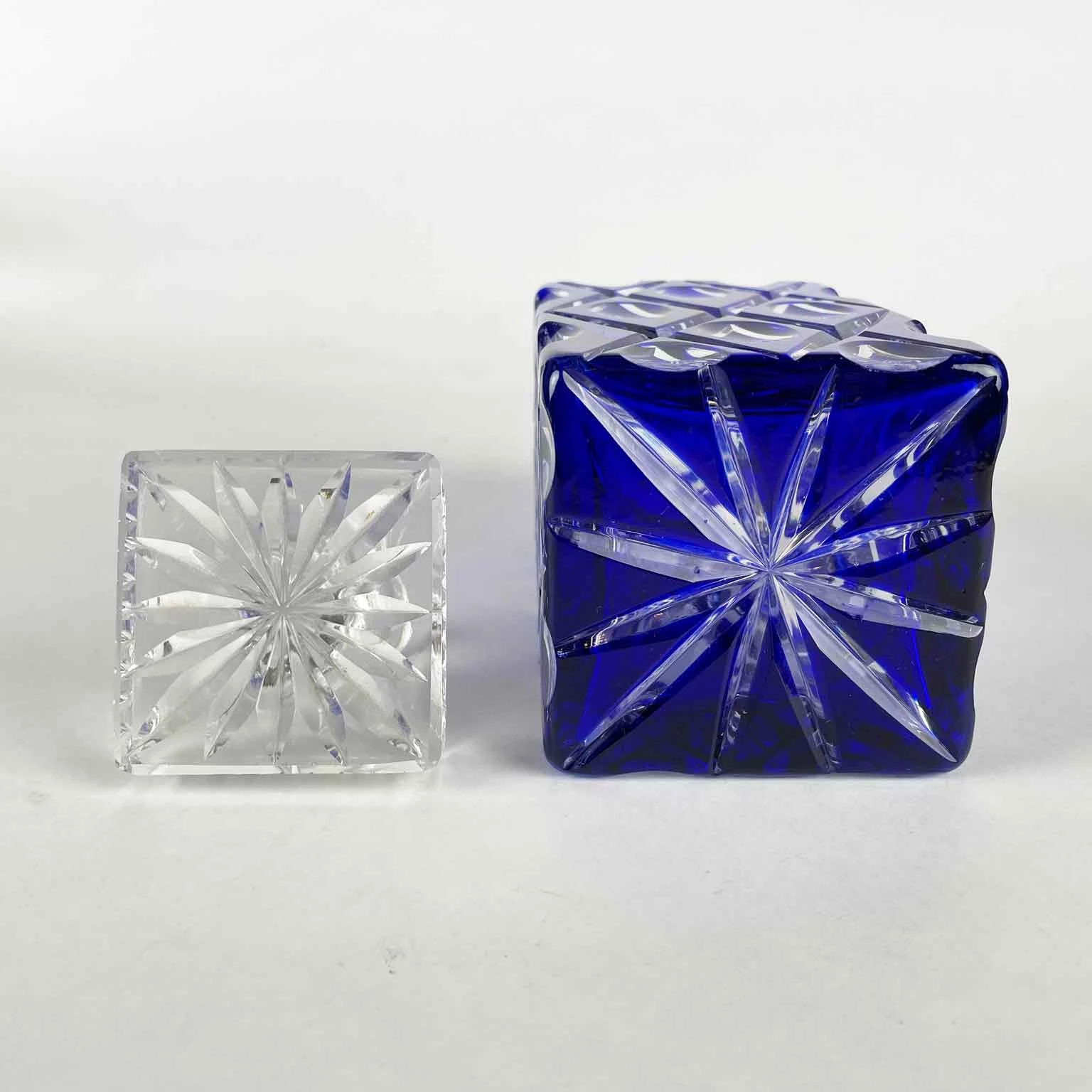 The stopper is a transparent square decorated with a carved sixteen-rayed star, while the bottom features a twelve-rayed star.