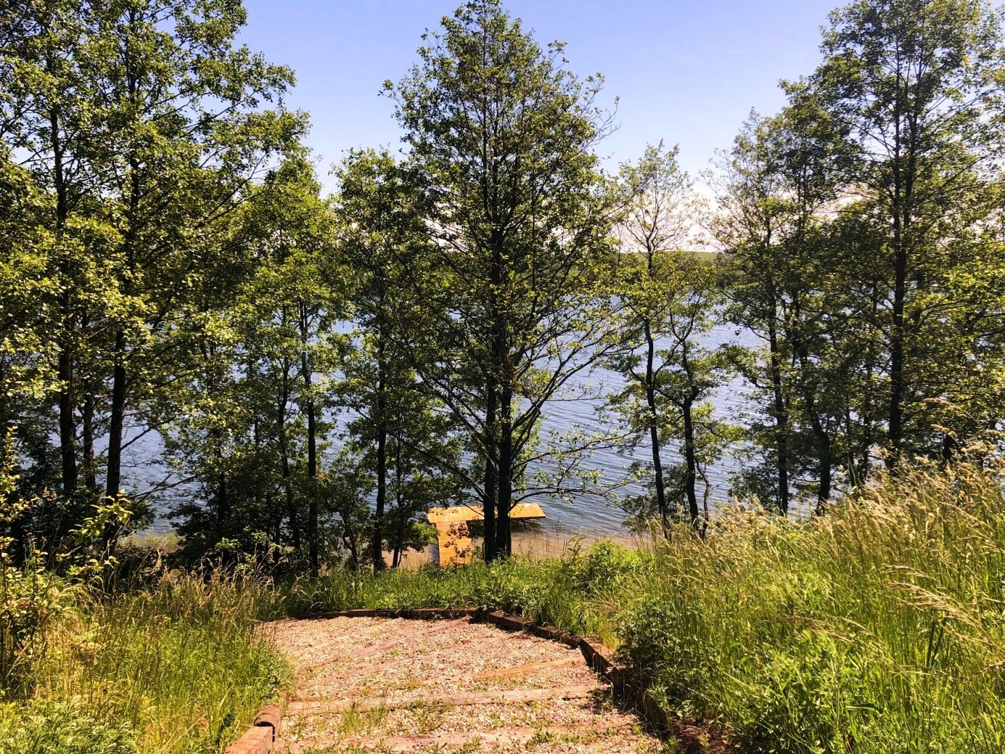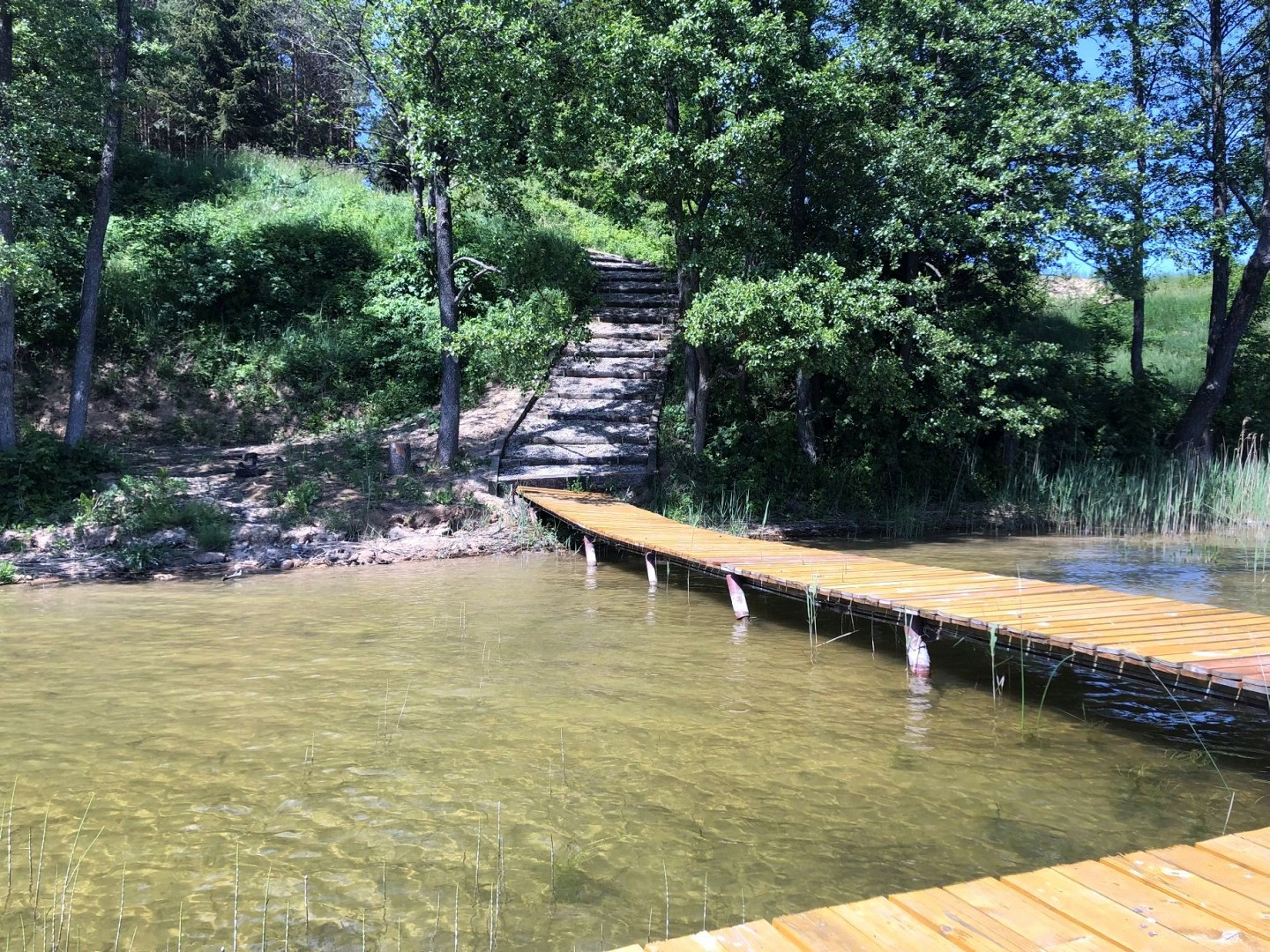 There is a pier, a beach, and 90 meters of lake shoreline.