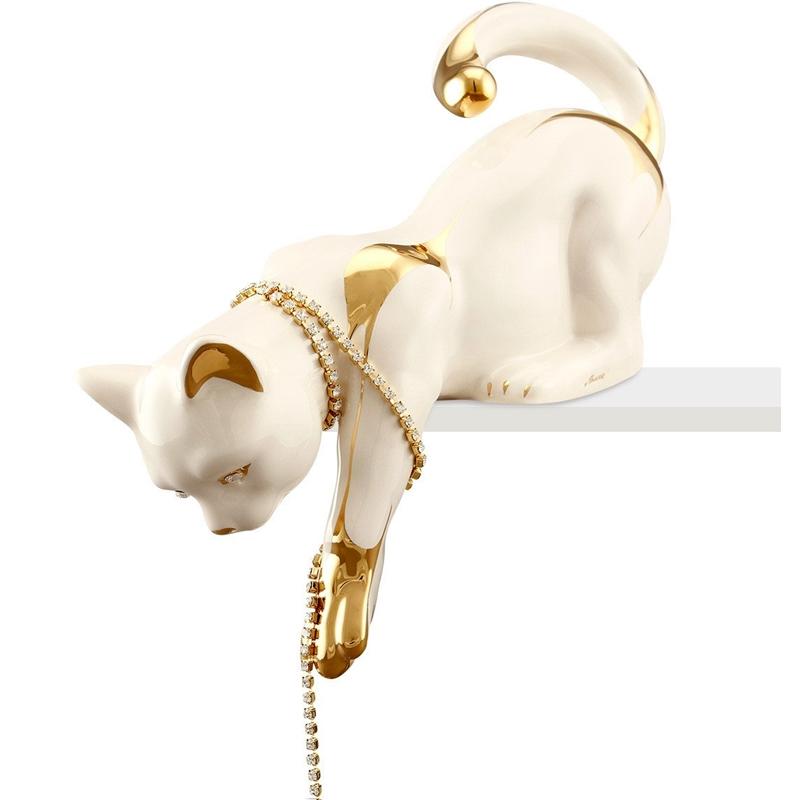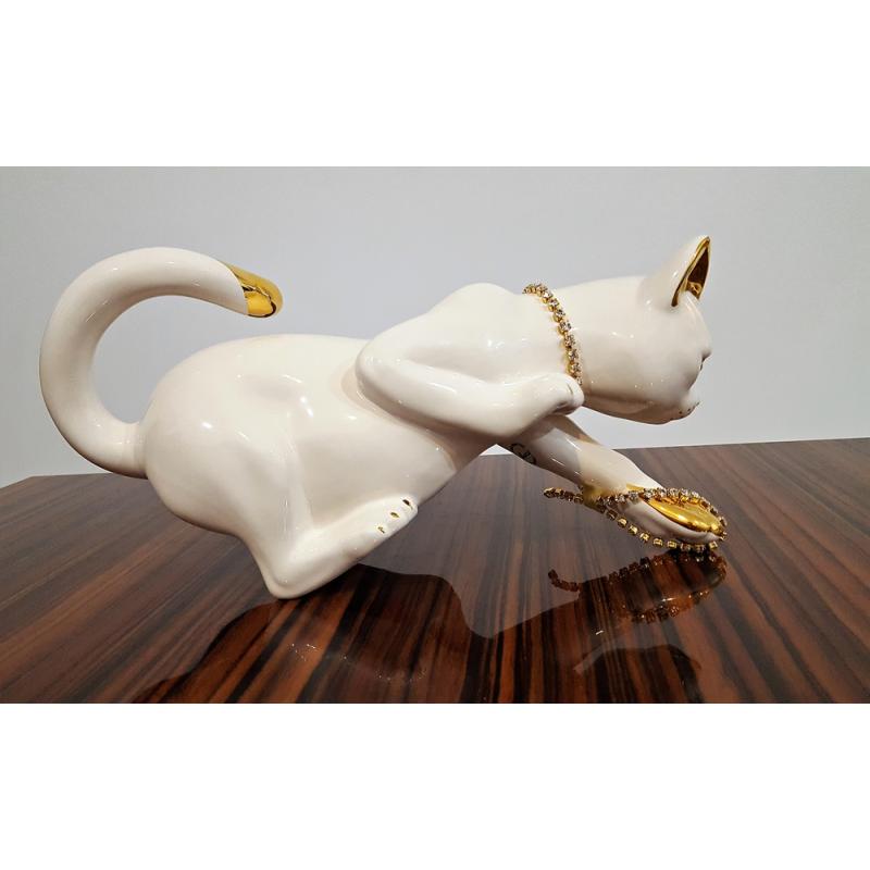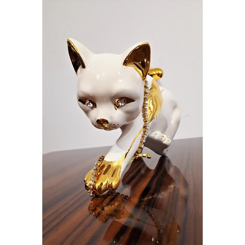 We are pleased to present to you a unique figurine of a gilded cat, with a collar made of crystals.