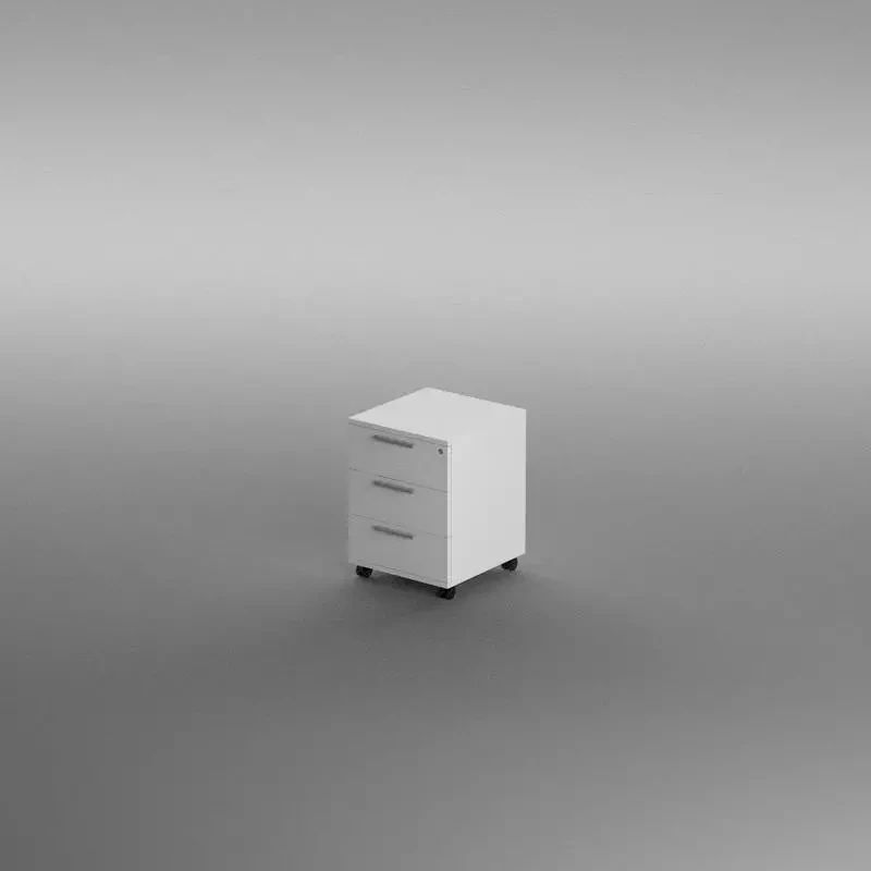 | Material | 3-drawer mobile container I-401, dimensions 43/45/56 cm (width/depth/height), made of 18 mm thick board, drawers on ball guides, central lock. |