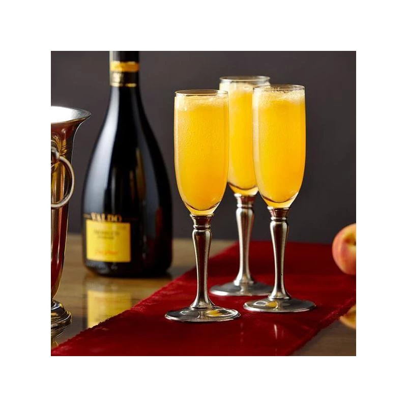 To serve champagne in accordance with proper savoir vivre etiquette, it is important to ensure that the drink is poured into specially designed glasses that facilitate enjoying its flavor and marveling at its unique aroma. Equally important is the ability to admire the rising bubbles on the surface, which further enhances the drinking experience. To achieve this, crystal glasses in the shape known as flute should be used, characterized by a tall stem, a slightly elongated, slender, and highly transparent bowl, as recommended by experts.