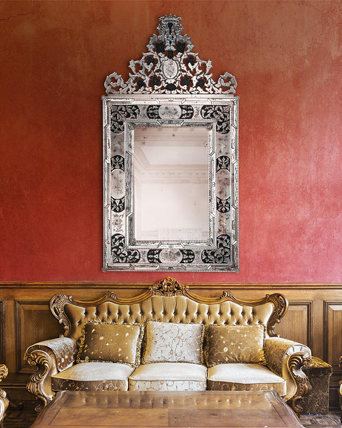 Among others, the Italian manufacturer Ongaro & Fuga specializes in their production. It was founded in 1954 by Franco Fuga and his wife, Tullia Ongaro. Their family traditions are continued by their son Julian. The brand’s products are a tribute to family heritage and multi-generational craftsmanship. Many of Ongaro & Fuga’s mirrors are highly faithful reproductions of antique pieces, giving interiors a unique character. How is Ongaro & Fuga mirror production carried out? The average time to produce one piece is about 100 hours. The first step is creating a drawing on paper. Then, the glass is shaped accordingly. Special diamond grinding stones are used to remove sharp edges and any irregularities. What else should you know about the Ongaro & Fuga brand? It is part of the Consorzio Promovetro di Murano, an organization that has been working for over 20 years to promote artistic glass and preserve the over 1000-year-old Murano glassmaking tradition.