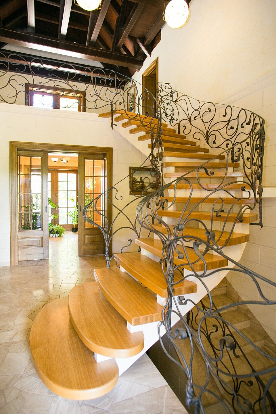 The upper floor of the building features two very large bedrooms with bathrooms and walk-in closets. Each also has its own fireplace. From the upstairs foyer, there is access to a balcony overlooking the lake and the surrounding area.