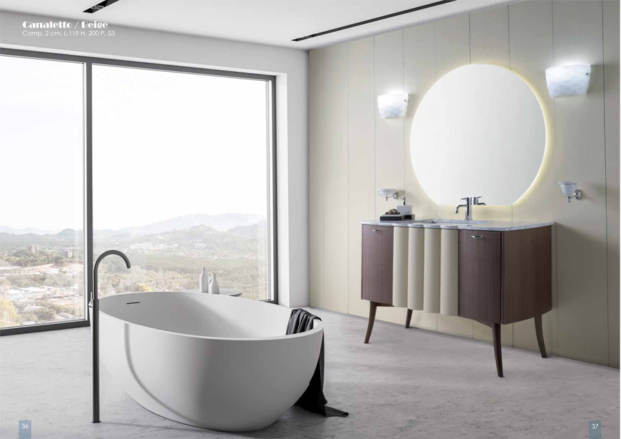 The bathroom is a specific room. It is associated with daily exposure to rapid changes in temperature and humidity. Therefore, when choosing Italian bathroom furniture, special attention should be paid to the material used. Often, various types of boards are used for this purpose, especially MDF. They are available in several different versions. Among the options are veneered furniture, which closely resembles those made with natural wood.