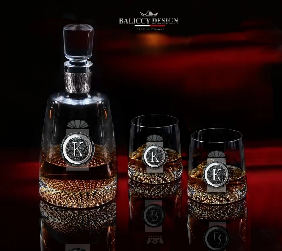 Kryształowa kolekcja do whisky z inicjałem "K", zaimponuje nawet najbardziej wymagającym koneserom szlachetnych trunków.