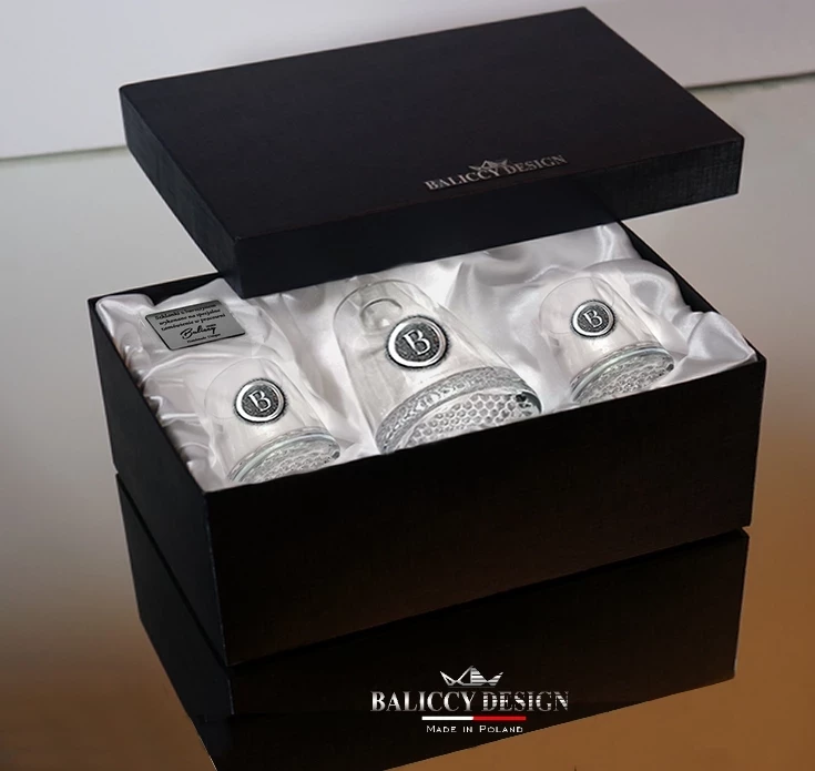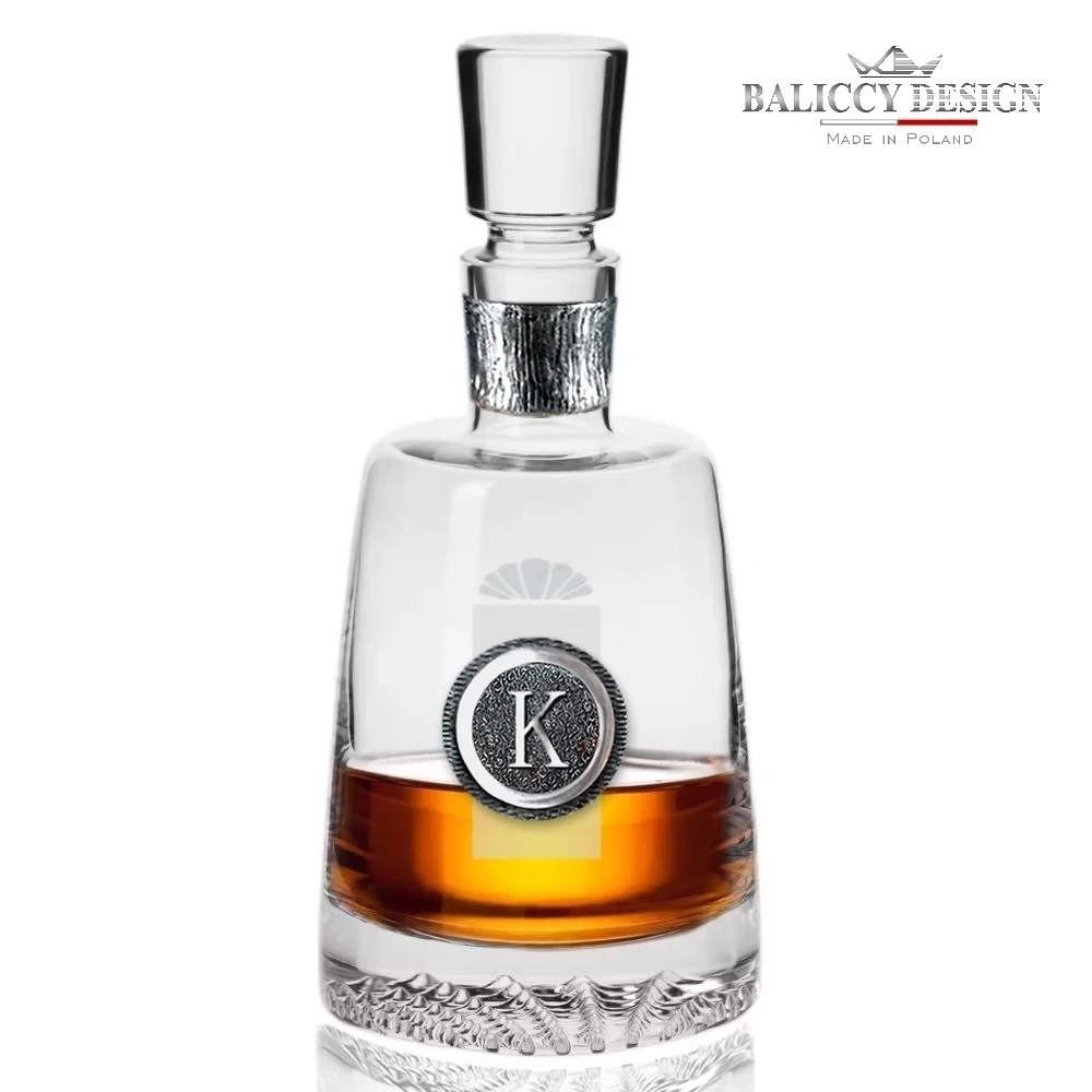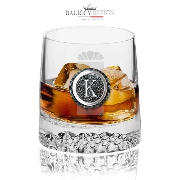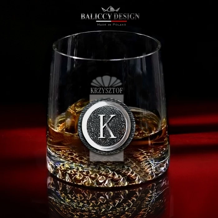 Elegancki zestaw kryształowy do whisky z kolekcji "Inicjały". Oferta dotyczy inicjału "K" ręcznie wykonanej płaskorzeźby - filigranu . Technika wykonania to relief kuty i odlewany połączony z techniką jubilerską. Połączenie pięknego kształtu szkła z osobistym inicjałem tworzy ponadczasowy indywidualny design. W projekcie nad lub pod inicjałem możemy wygrawerować imię, herb rodowy lub logo. Kolekcja ta może stać się elegancką dekoracją stołu lub idealnym, niebanalnym prezentem dla bliskiej osoby. Ozdobne opakowanie i personalizacja sprawi, że szklanki zaimponują nawet najbardziej wymagającym koneserom szlachetnych trunków.