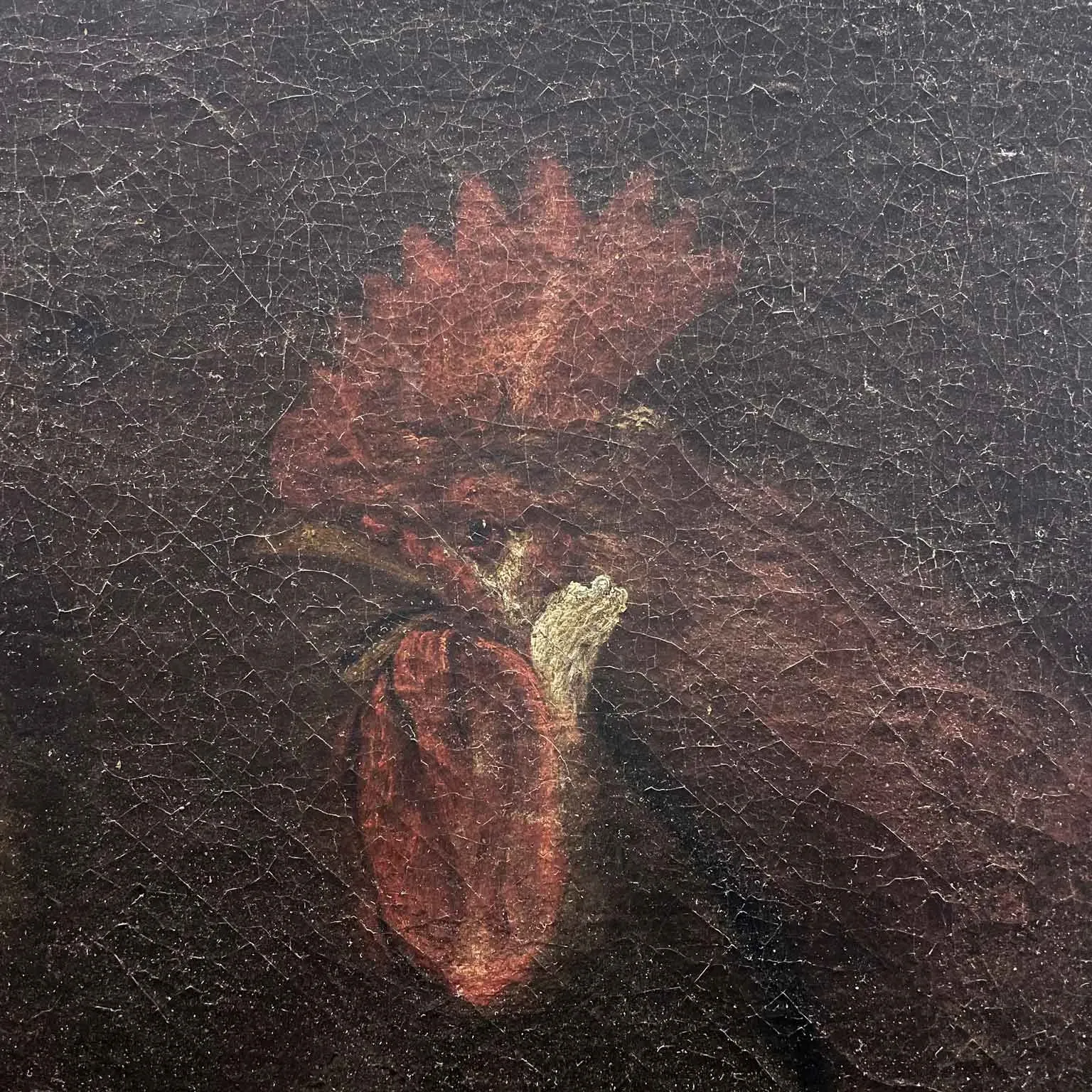 Saint Peter and the Rooster, 17th-century oil painting on canvas, stretched on a new frame. The painting likely was part of a larger composition depicting the repentance of the weeping Saint Peter.