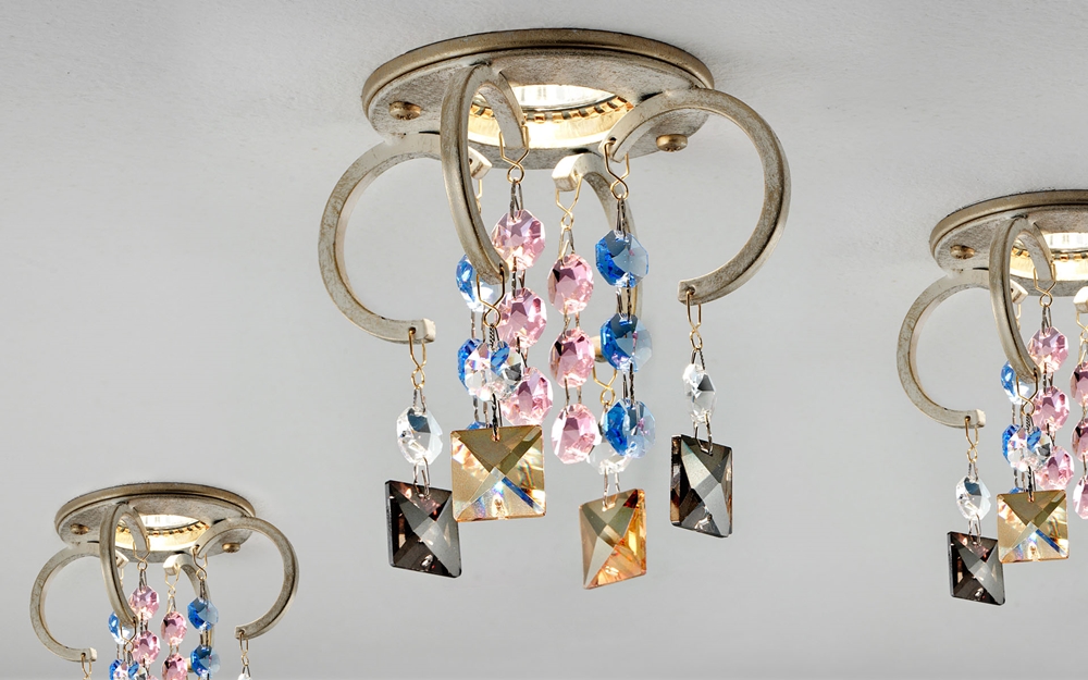 As for the bulb, it should emit warm light as close as possible to daylight. Fans of bedrooms decorated in a glamour style will surely appreciate impressive, decorative chandeliers. Note! They are suitable only for large, high rooms. Otherwise, they could unnecessarily overwhelm the space. Chandeliers can provide directional or diffused light. In the bedroom, the latter is the best choice. This is a proven way to evenly illuminate the interior.